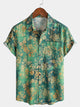 Camicia a maniche corte in cotone verde da uomo con motivo floreale
